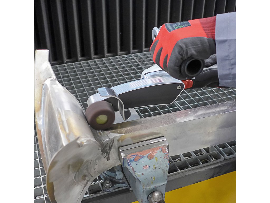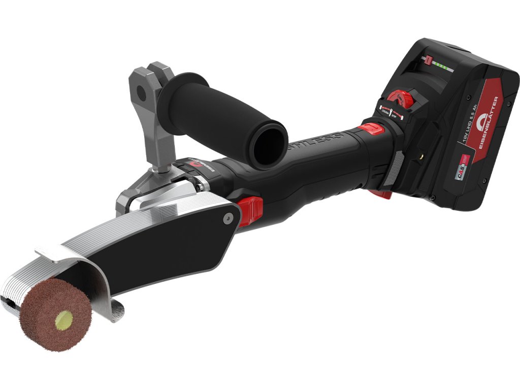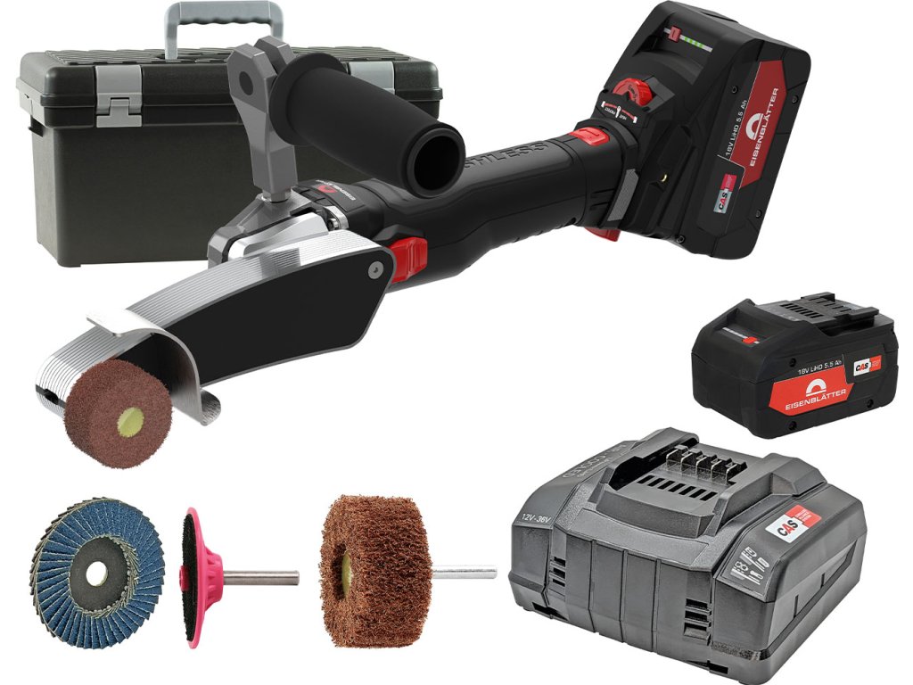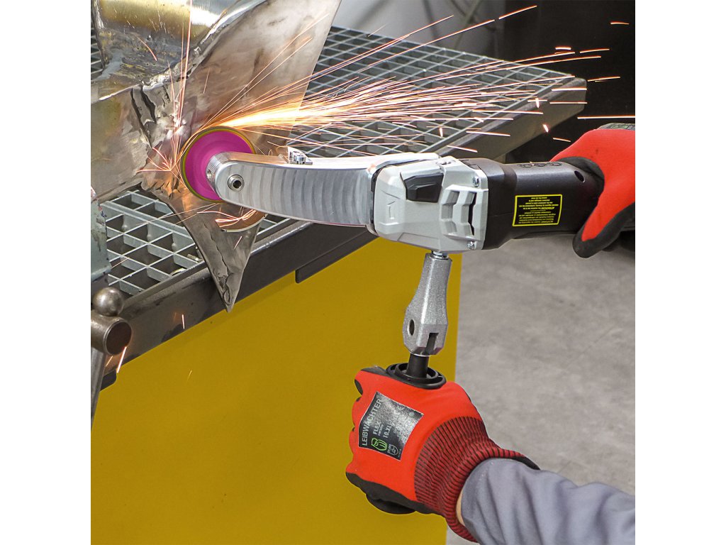 Dokonalá ergonomie pro podélné broušení. Rozsáhlý sortiment brusných nástrojů pro každou brusnou roli na nerezavějící oceli, oceli, neželezných kovech, hliníku, dřevě a plastech.