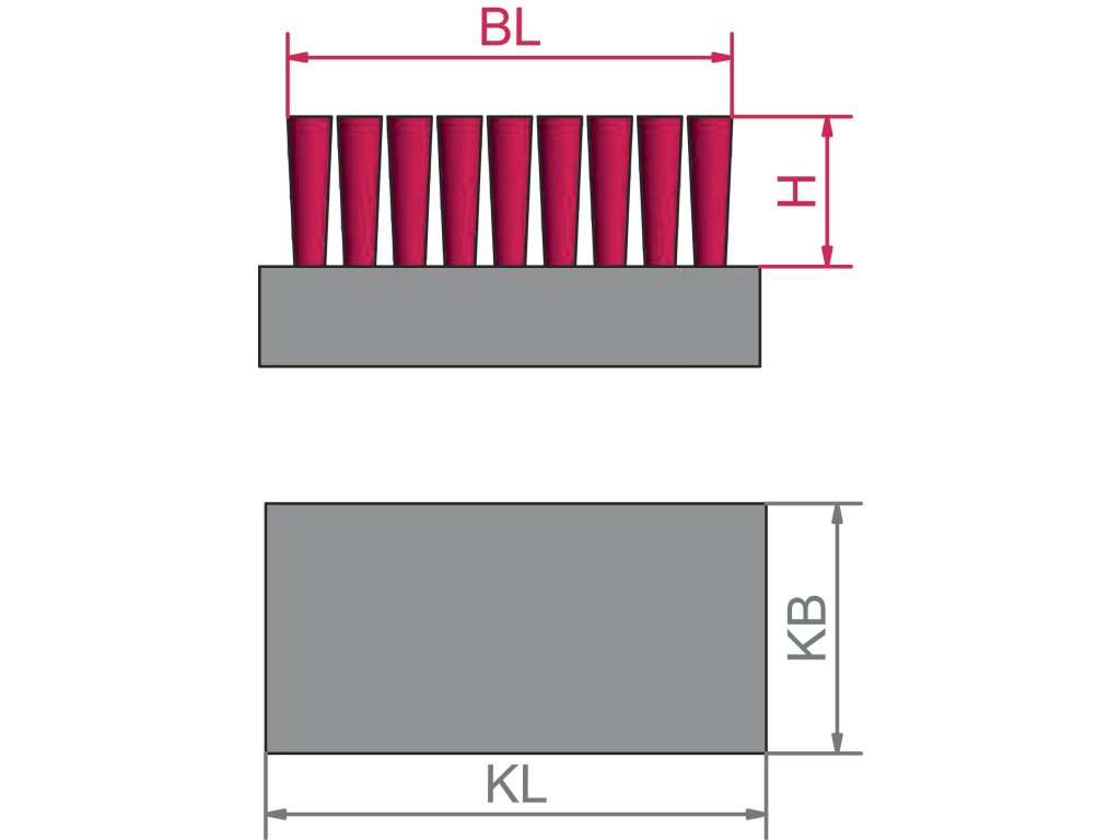 Ruční kartáče pravoúhlé s violinem Zvlášť pevné: stabilní univerzální kartáče s velkým množstvím drátu. STA = ocelový drát STM = ocelový drát, pomosazenýDoplňkové parametry