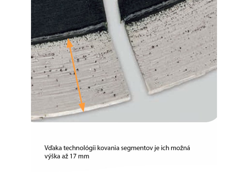 Diamantový řezný kotouč LD410 SPEED Řeže nejtvrdší kámen jako granit čistě a extrémně rychle. Umožňuje to nově vyvinutá technologie kovaných segmentů s vysokou hustotou a bezporézností spoje. Proto se vyznačuje LD410 SPEED v porovnání s konvekčními diamantovými kotouči enormní rychlostí řezání a životností. Lepší vlastnosti spoje segmentů a ocelového jádra vedou ke snížení nebezpečí rozlomení. Díky rovnoměrnému a úzkému rozestupu mezi segmenty je zatížení vibracemi minimalizováno. Nově vyvinutá kovářská technologie umožňuje výšku segmentů až 17 mm. Materiál: tvrdý přírodní kámen (např. granit) armovaný beton vymývyný beton stavební materiály, cihla, šamot Příklady použití: dlažební kameny sklepní dlažby spojovací dlažba otvory ve stěnách řezání dlažeb okenní otvory schody BRAINTOOLS - jsou zvláště inovované výrobky s jedinečnou použitelností a bezproblémovým řešením.Doplňkové parametry