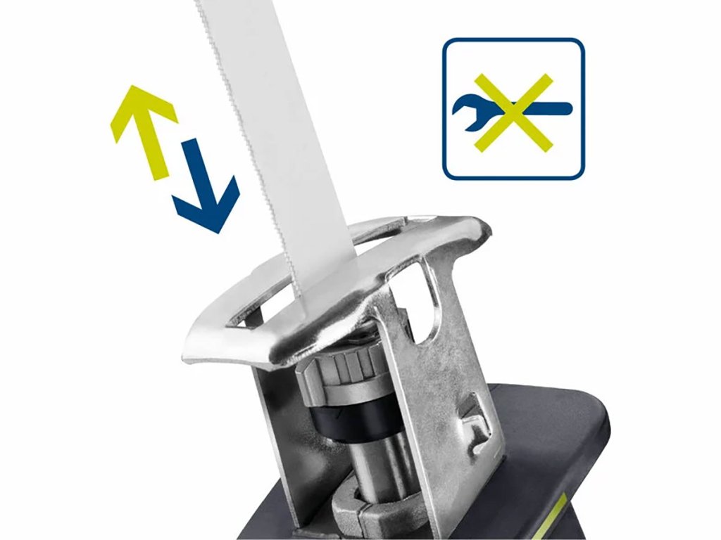 Malá lehká jednoruční akumulátorová ocasní pila je určena pro řezání dřeva, plastů, kovů a jiných podobných materiálů při práci v dílně nebo zahradě. Je poháněna nejmodernějším bezuhlíkovým motorem. Tento nový typ motoru má vyšší životnost, je výkonnější a má menší spotřebu než klasické motory s uhlíkovými kartáči. Použití pružného pilového listu umožňuje provádět nejen přímé a obloukové řezy, ale i řezy ve špatně přístupných místech. v rozích a podél zdi, nebo prořezávání stromů. Pilový plátek lze velmi jednoduše a rychle vyměnit bez použití nástroje a pokud potřebujete řezat směrem vzhůru, můžete jej jednoduše otočit. Akumulátorový pohon umožnuje její použití i na místech, kde není k dispozici rozvod elektrické energie. Spínač má zámek proti náhodnému spuštění, integrovaná LED svítilna osvětluje pracovní prostor a pro zlepšení orientace v tmavých prostorách má zpožděné vypnutí. Rukojeť je pokryta gumou, která snižuje přenos vibrací do ruky a spolu s nízkou hmotností, ergonomickým tvarem a vyvážením činí práci příjemnější a méně únavnou.
