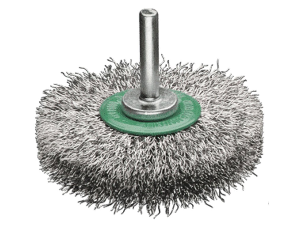 Kotoučové kartáče se stopkou Kotoučové kartáče na této straně s pevně namontovanou stopkou jsou určeny pro profesionální použití. Charakteristické pro tyto univerzální nástroje je husté osazení drátů a jejich vyvážená rotace. Nerezavějící kartáče LESSMANN kartáče rozeznáte jednoduše podle zelené barvy hrnce. Používáme drát z materiálu 1.4310. Drát 1.4401 na objednávku. Kartáče mají stopku pr. 6 mm. ROF = nerezavějící drát, zvlněnýDoplňkové parametry