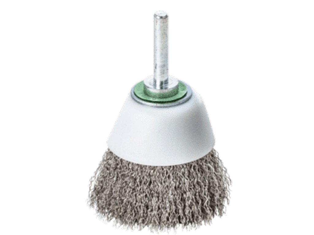 Kartáče na plochy se stopkou Zobrazené modely se stopkou jsou především vhodné pro opracování malých a středních ploch. Kartáče na plochy s umělohmotným hrncem se štětinami z nerezavějícího drátu jsou zvláště vhodné pro použití na nerezových materiálech. Zabezpečují ochranu před kontaktem a chrání nerez před korozí a cizími nečistotami. Vyšší otáčky, menší opotřebení Kartáče z ocelového a nerezavějícího drátu vydrží také vyšší otáčky a mohou být použity na elektrických nebo vzduchových bruskách. Husté uložení zaručuje dlouhou životnost. Kartáče s brusnými štětinami jsou vhodné pro odjehlení, leštění nebo strukturování nerezavějící oceli, hliníku a umělé hmoty. ROF = nerezavějící drát, zvlněnýDoplňkové parametry