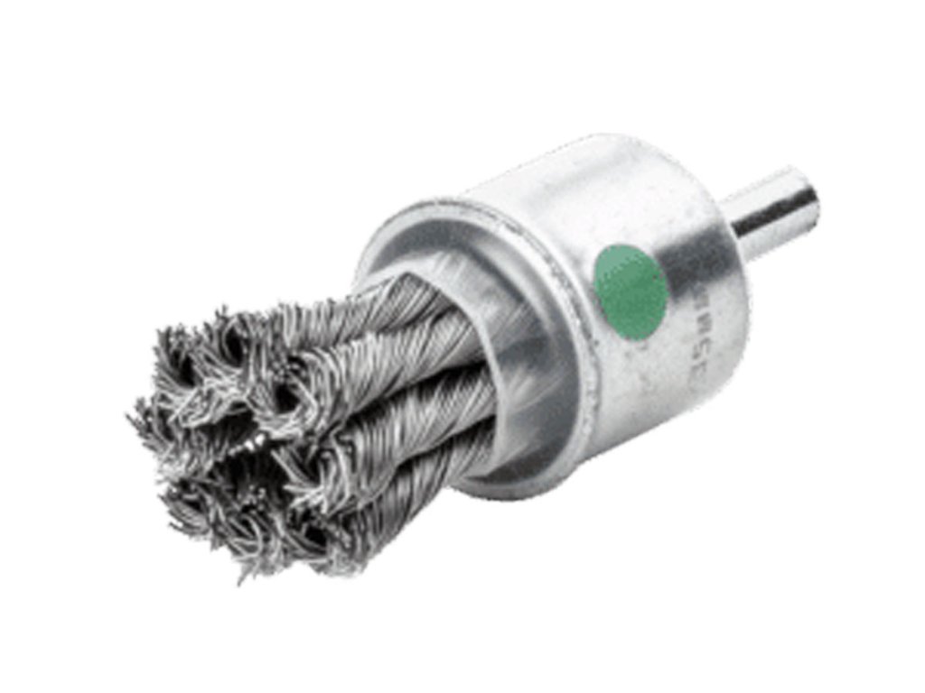 Štětcové kartáče se stopkou, splétané V závislosti na otáčkách se kartáč otevírá více nebo méně a umožňuje opracování na těžko dostupných místech, jako např. v zahloubeních skříní. Hrnce u splétaných štětců s nerezavějícím drátem jsou povlakovány umělou hmotou a jsou označeny zeleným bodem. Toto zaručuje ochranu nerezavějících povrchů. STH = vysokopevný ocelový drát R04 = nerezavějící drát hladkýDoplňkové parametry