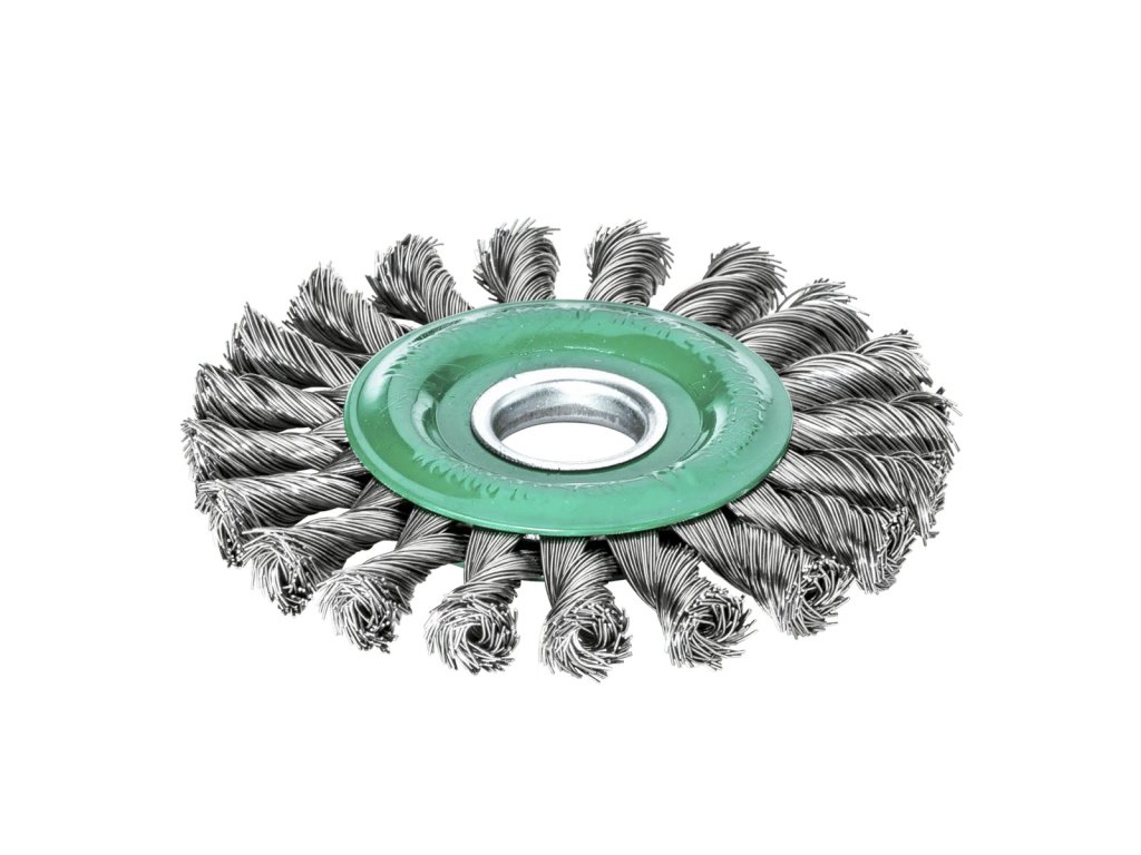 Splétaný kartáč splétaný, jednořadý Používají se s úhlovými bruskami nebo na stacionárních bruskách na předpřípravu povrchu nebo následné čištění svarů (tupých nebo koutových). Odstraňují záněty, rez, lak, zbytky pryže a odstraňují otřepy na hranách.Doplňkové parametry