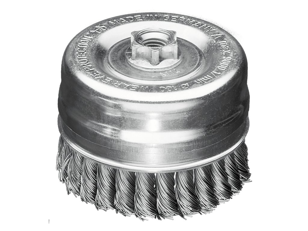 Splétané hrncové kartáče Splétané hrncové kartáče jsou ideální pro těžké opracování kartáči. k předpřípravě kovových povrchů k lakování nebo k odstranění strusky, rzi, okují a zbytků betonu. Provedení s o 80, 100 a 125 mm jsou vybaveny praktickým přítlačným kroužkem: slouží ke stabilizaci a lze jej snadno odstranit, když je spotřebován přetáčecí drát. Tím je k dispozici dalších 20mm drátu. Tip pro uživatele: Zkuste náš kartáč ø 90 mm pro malou úhlovou brusku. Ve srovnání s běžným kartáčem ø 65 mm má tento model o 50 % více drátu. STH = vysokopevný ocelový drát, rovnýDoplňkové parametry
