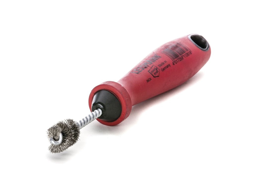 Kartáče na fitinky nyní s novou, ergonomickou, dvoukomponentní rukojetí K čištění konců trubek v rozvodech plynu, klimatizace a chladírenských zařízeních před pájením. K tomu jsou vyrobeny kartáče na fitinky s ergonomickou rukojetí a osazeným materiálem z nerezavějícího drátu. Kartáče na fitinky pro vnější čištění mají drátěnou pásku u oceli. Kartáče na fitinky - sada Všechny vnější a vnitřní kartáče pěkně zabalené v praktické tašce z umělé kůže. ROH = vysokopevný nerezový drát Kartáče na fitinky nyní s novou, ergonomickou, dvoukomponentní rukojetí K čištění konců trubek v rozvodech plynu, klimatizace a chladírenských zařízeních před pájením. K tomu jsou vyrobeny kartáče na fitinky s ergonomickou rukojetí a osazeným materiálem z nerezavějícího drátu. Kartáče na fitinky pro vnější čištění mají drátěnou pásku u oceli. Kartáče na fitinky - sada Všechny vnější a vnitřní kartáče pěkně zabalené v praktické tašce z umělé kůže. ROH = vysokopevný nerezový drátDoplňkové parametry