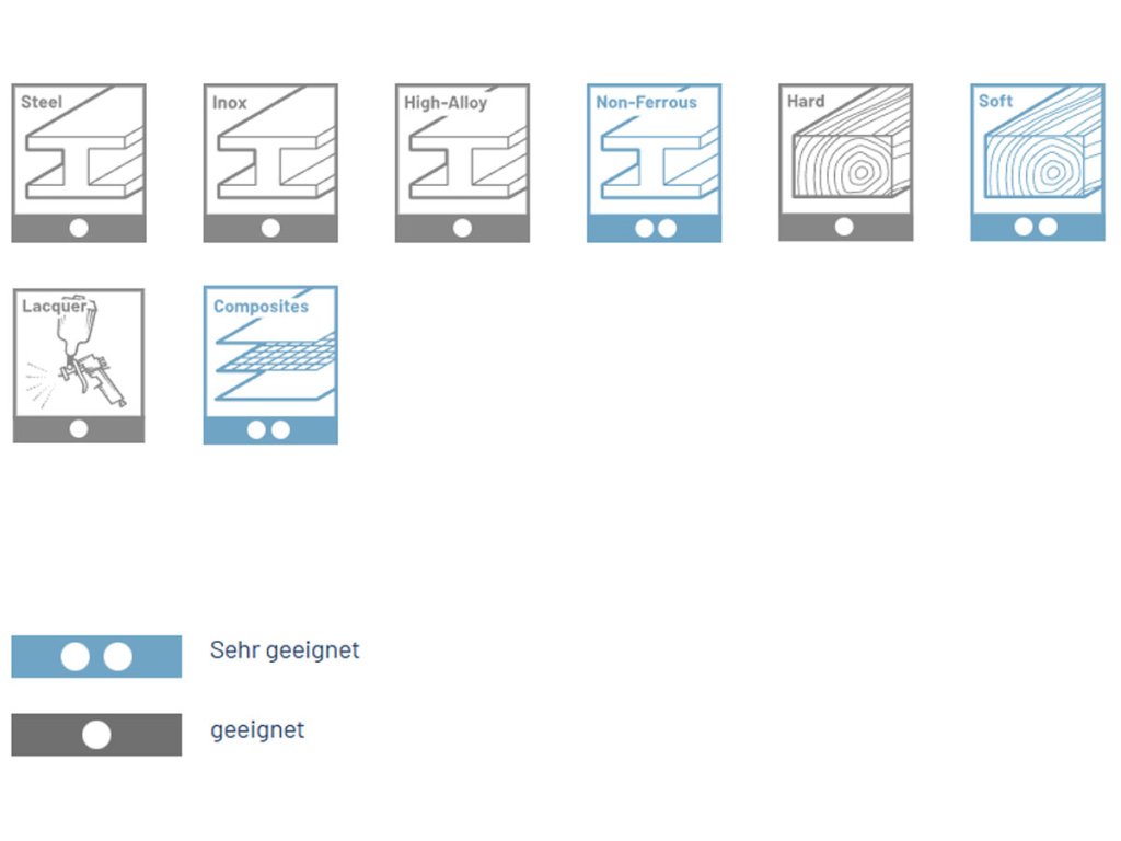 Obzvláště vhodné pro zpracování hliníkových konstrukcí (např. části karoserie, ozdobné lišty, hliníkové plechy, nádrže motocyklů, lité kryty)