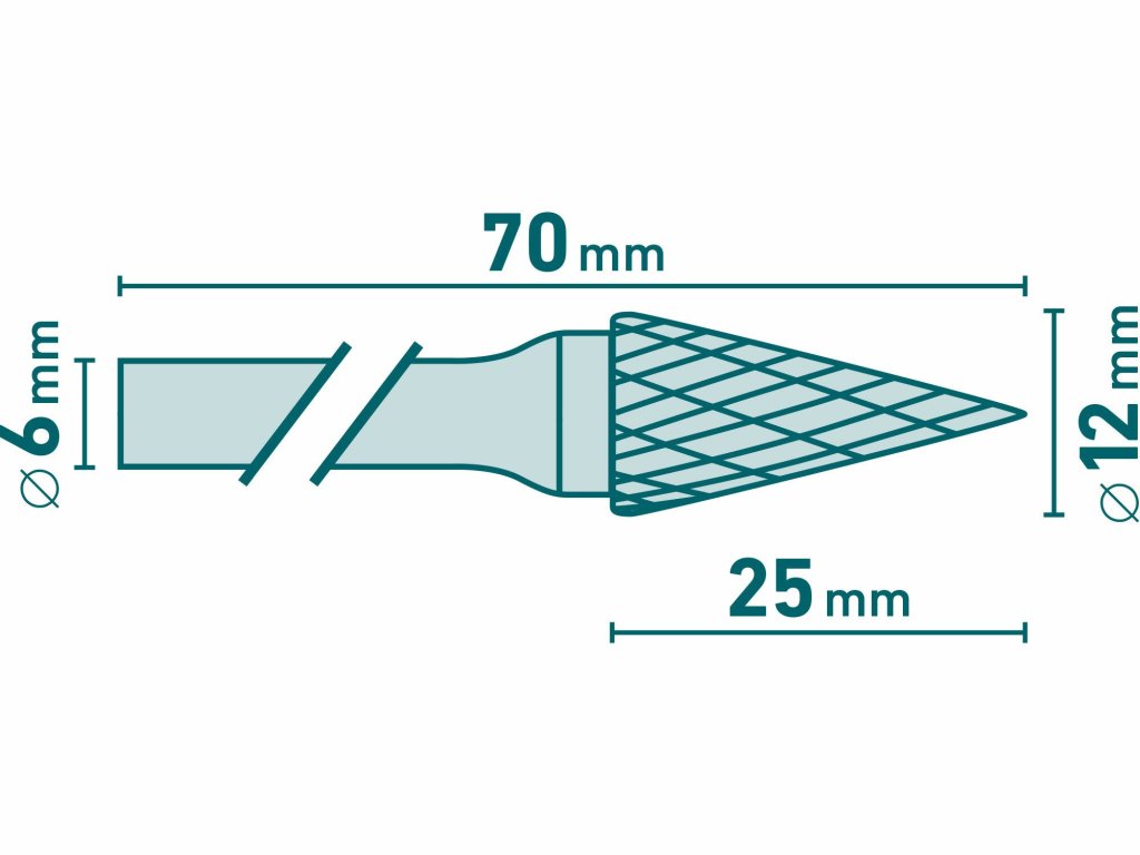 8703795 | M (SKM) - Kuželová špičatá fréza HP-3 12,0x25x6-70 mm, nepovlakované