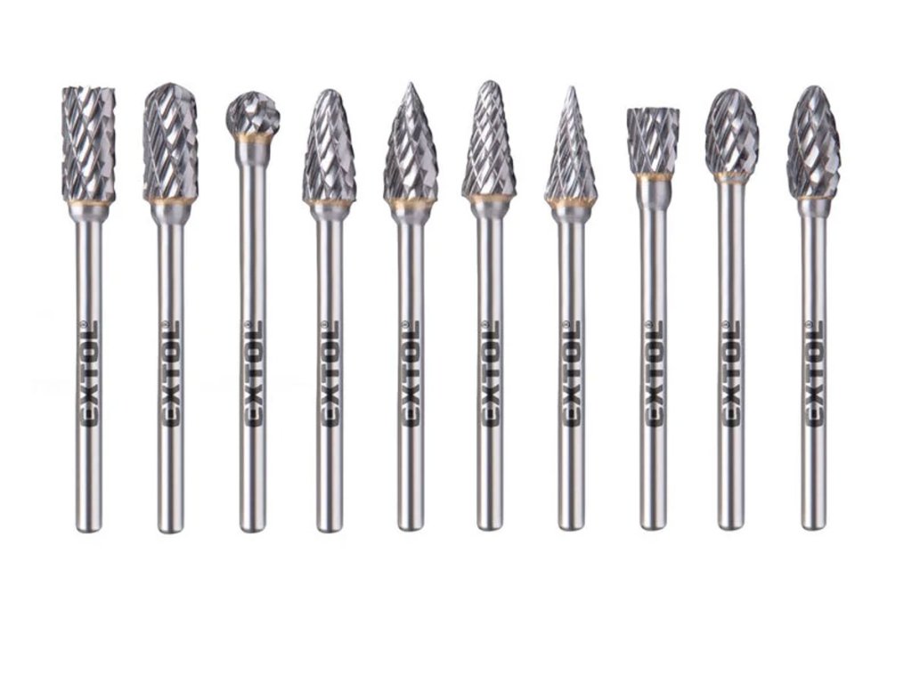 8703810 | Sada karbidových fréz, 10ks, ø6mm, stopka ø3mm, celková délka 50mm