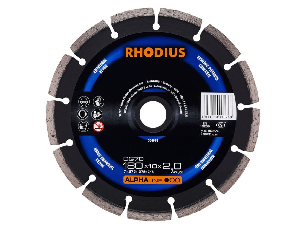 304094 | Diamantový řezný kotouč DG70 180x10,0x2,0x22,23 mm