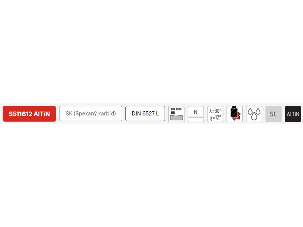 | Označení fréz: | S511612 AlTiN |