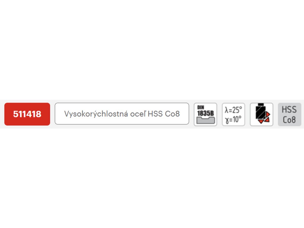 | Materiál nástroje: | HSS Co8 - vysokovýkonná ocel pro frézovanie vysokopevných materiálů |