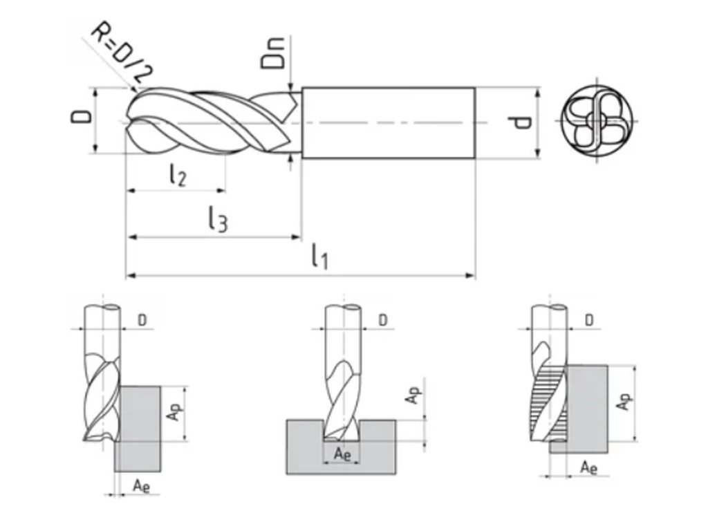 | Obráběný materiál pro frézování: | litina, ocel kalená, ocel, slitiny Cr-Ni, titan a slitiny |