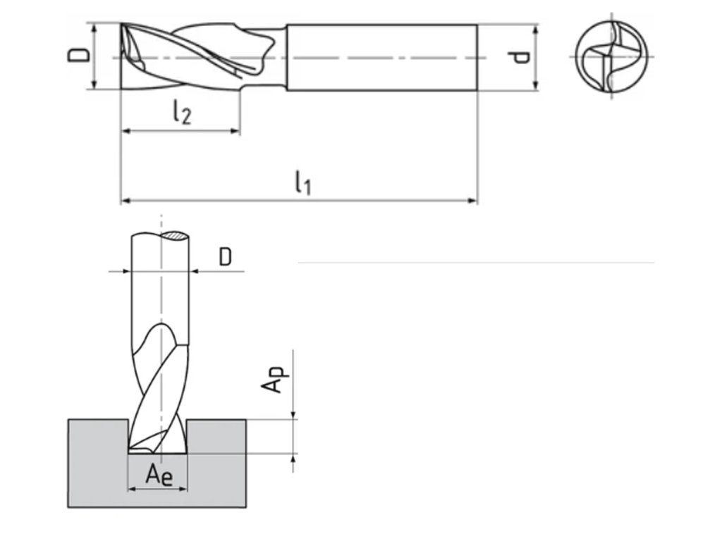 | Počet řezných hran fréz Z: | 2 |