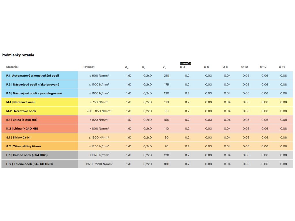 | Obráběný materiál pro frézování: | litina, nerez, ocel kalená, ocel, slitiny Cr-Ni, titan a slitiny |