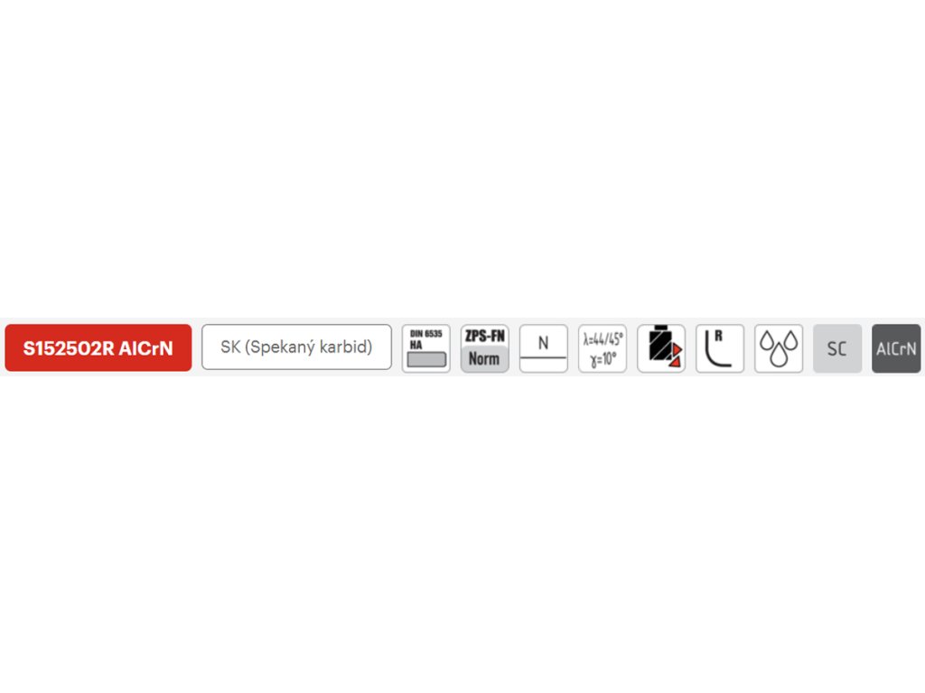 | Typ nástroje: | N - univerzální použití do pevnosti 900 MPa |