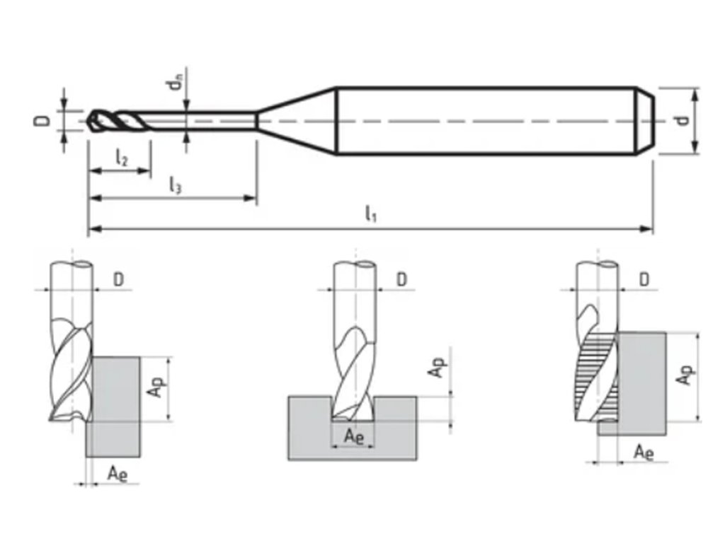 S260402.016 AlTiN | Mini fréza Ø1,6x2,4x50, Z2, λ 30°, ZPS, SK, AlTiN, N