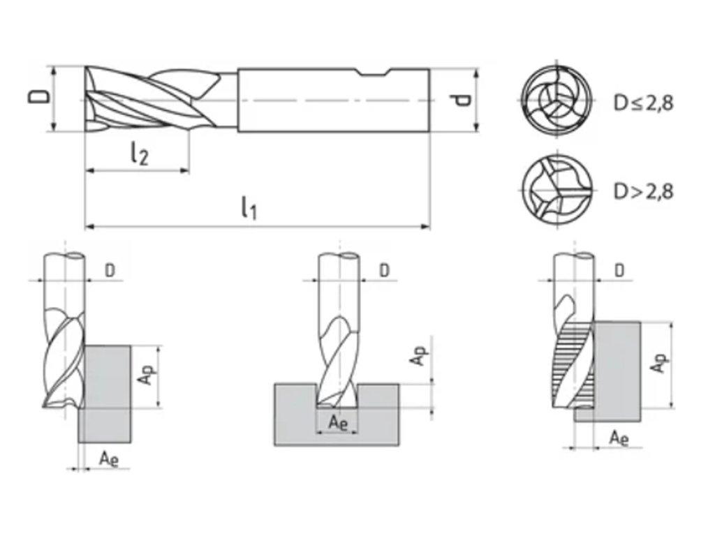 Minifrézy dlouhé, typ N, ploška weldon, vyrobené z rychlořezné oceli HSS Co8, vhodné pro šlichtování, drážkování a hrubování, pro obrábění ocelí, nerezových ocelí a litiny.