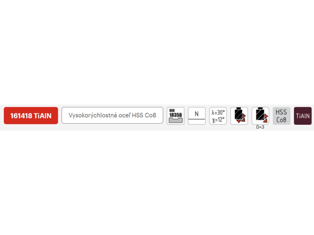 | Typ nástroje: | N - univerzální použití do pevnosti 900 MPa |