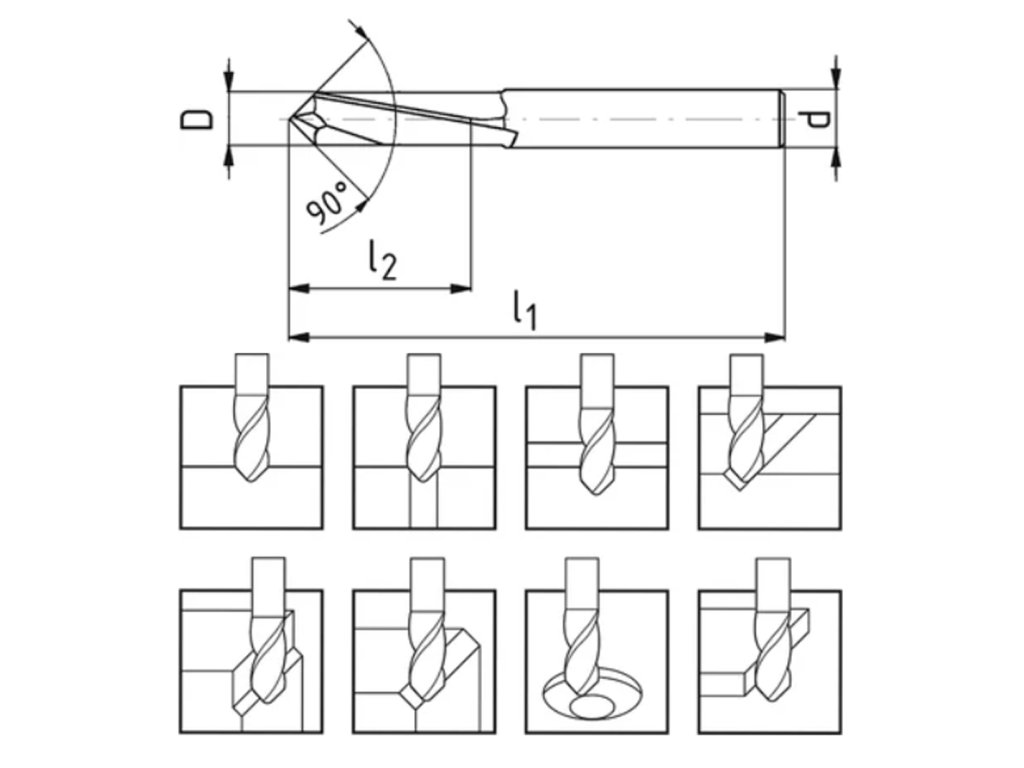 S390002.090060 | Multifunkční fréza Ø6x12x60, Z2, 90° , ZPS, SK