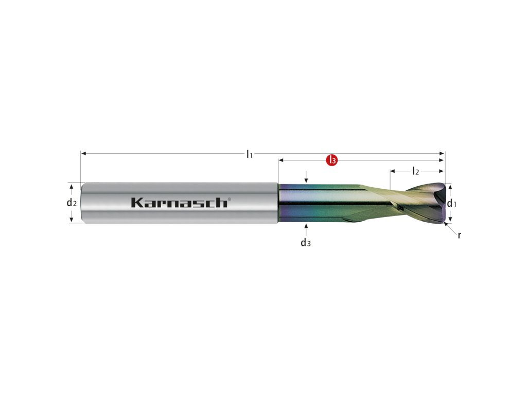 K30.6215 Tvrdokovová stopková fréza, zaoblené ostří, dlouhá, povlakovaná hliník, barevné kovy, titan, GFK-CFK Vhodné pro materiál: hliník hliník < 6% Si hliník < 12% Si mosaz měď Ampco titan nikl bronz GFK-CFK umělá hmota MAKROLON UHMW PE voskDoplňkové parametry