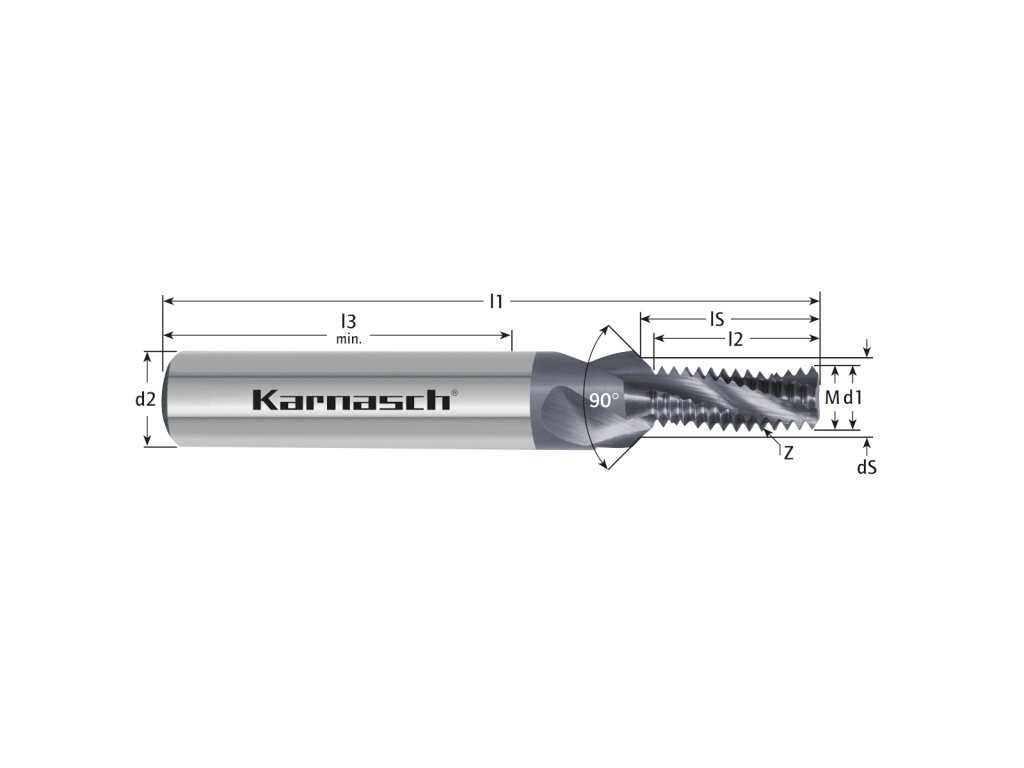 K23.2006 Tvrdokovová závitová fréza spirálová 30° pro vnitřní závity, povlakovaná diamantem, s 90°zahloubením, metrický ISO závit DIN 13 - 2,0xD, HSC, povlakovaná Vhodné pro vrtání: kompozitní materiály GRAFIT GFK CFK hybridní materiály CFK-ALU kompozity povlakované materiály laminátem Ti-CFK PA66, CF30 PVDF, GF30 PEEK, GF30 PEEK, CF30 oxid zirkonuDoplňkové parametry